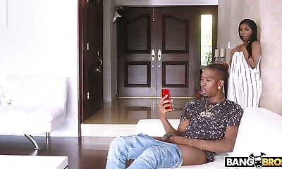 Hot ebony Plus-size Maseratti fucks horny black man on the white couch